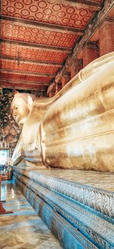 Wat Pho – Tempel des liegenden Buddhas: Hier kann die 46 Meter lange und 15 Meter hohe liegende Buddha Statue besichtigt werden. Nicht nur der Buddha, sondern auch die Tempelanlage rund herum ist wirklich sehr schön und empfehlenswert. Eintritt liegt bei etwa € 3.