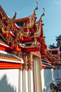 • Wat Saket – Tempel des Goldenen Berges: Steht im alten Teil Bangkoks auf einem kleinen Plateau und ist über unzählige Treppen ereichbar. Von oben bietet dieser eine geniale Aussicht über die Stadt. Eintrittsgebühr von umgerechnet ca. € 1,50.