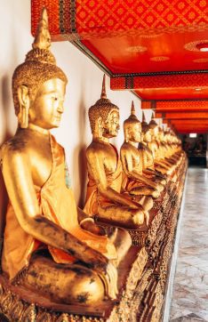• Wat Traimit – Tempel des Goldenen Buddha: Liegt gegenüber des Hauptbahnhofes Hua Lamphong und kann gut mit einem Besuch in China Town kombiniert werden. Fun Fact: Bis in die 1950er Jahre hatte man keine Ahnung, dass sich hinter der unscheinbaren Gipsstatue pures Gold verbarg! Nur durch einen Fehler bei den Bauarbeiten fiel der Buddha zu Boden und zum Vorschein kam der 5,5 t schwere Goldene Buddah im Wert von ca. 250 Mio. USD. Eintritt umgerechnet etwa € 1,50.